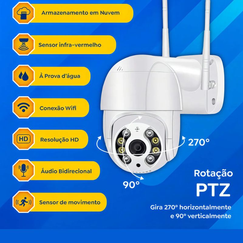 - Rotação PTZ de 355° para cobertura ampla.