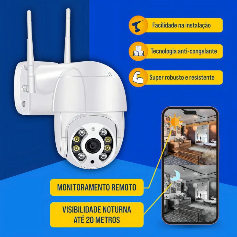 - Visibilidade noturna de até 25 m para segurança 24/7.
